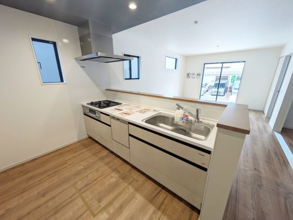 - 電気、側溝、システムキッチン、カウンターキッチン、食器洗浄乾燥機、シャンプードレッサー、浴室乾燥機、モニタ付インターホン、ウォシュレット、Wクロゼット、床下収納、収納スペース、室内洗濯機置場、トイレ2ヶ所