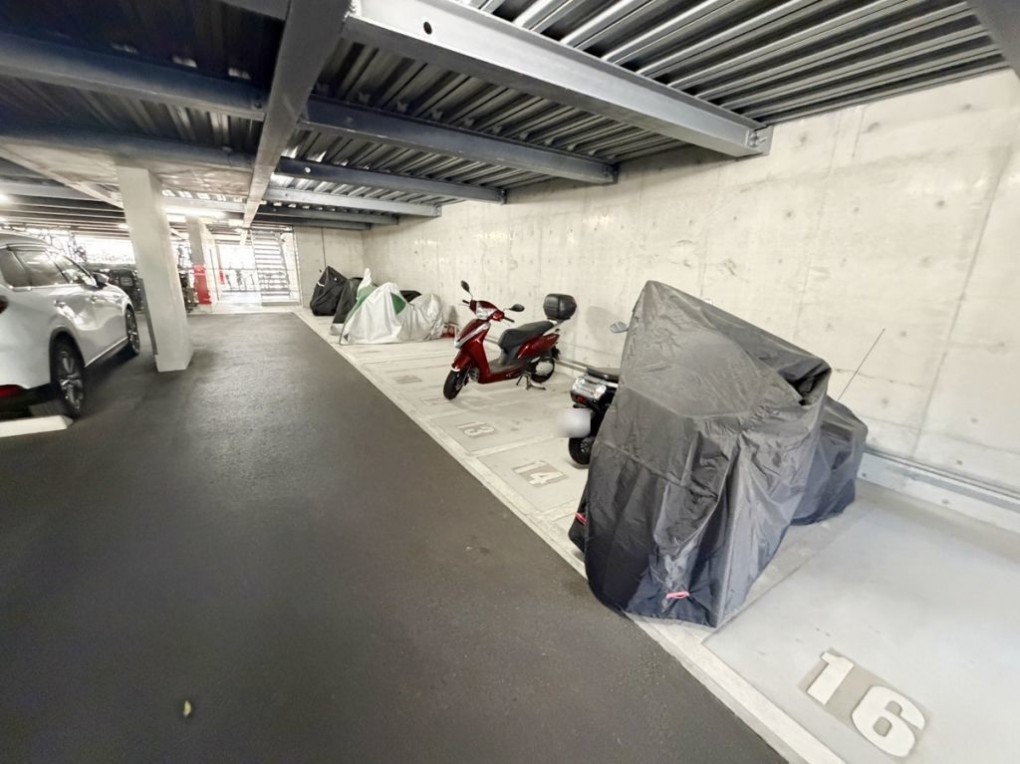 - 電気、システムキッチン、モニタ付インターホン、Wクロゼット、エレベータ、給湯、室内洗濯機置場、オートロック、駐輪場、2面バルコニー