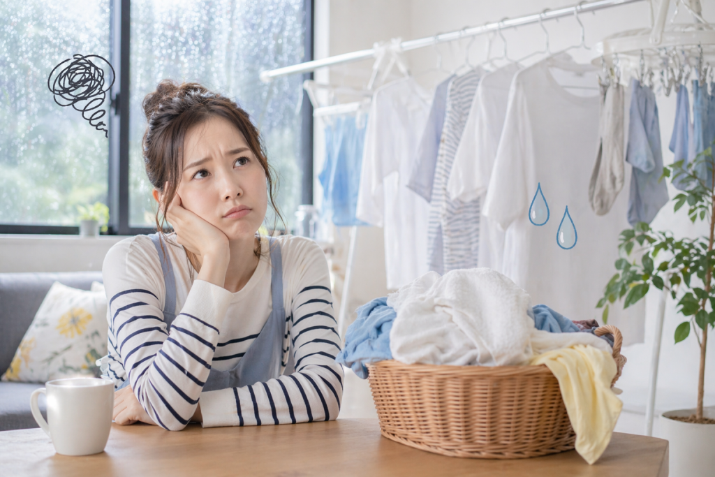梅雨の洗濯物、みんなどこに干してる?部屋干しの悩みと原因