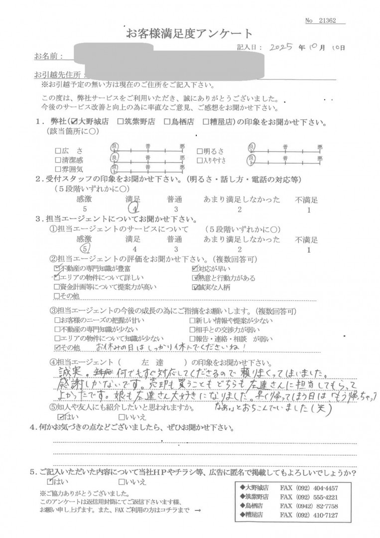 2026/03 中古一戸建てのご売却 大野城市S様お客様満足度 ★★★★★